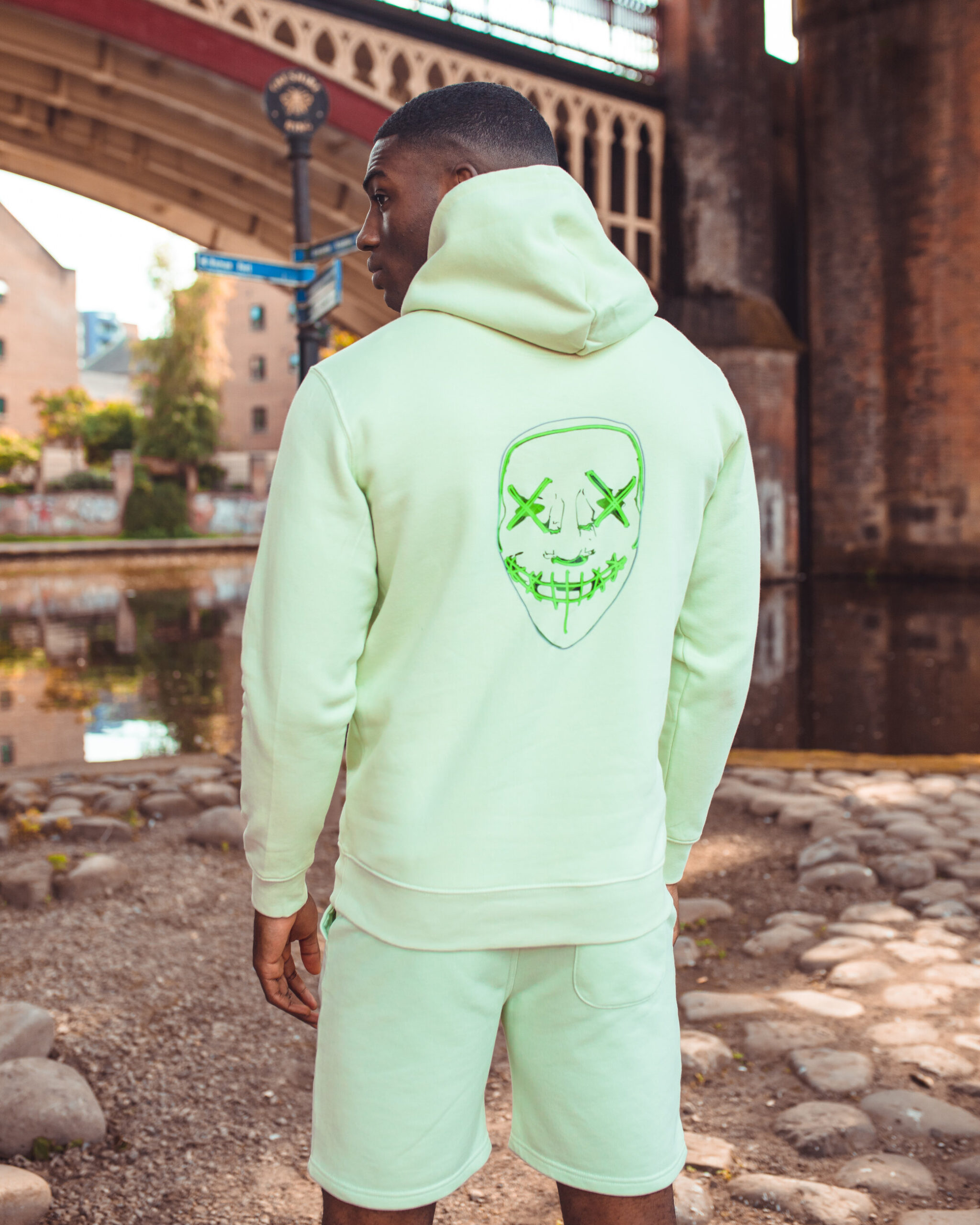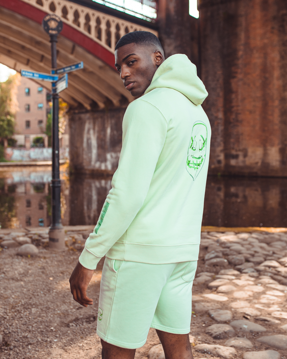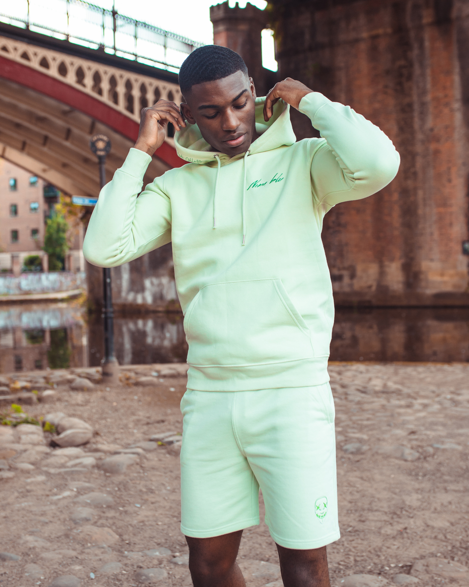 Stem Green, 85% Organic ringspun combed cotton, 15% recycled polyester, Printed graphics, Drawstrings, 350gsm