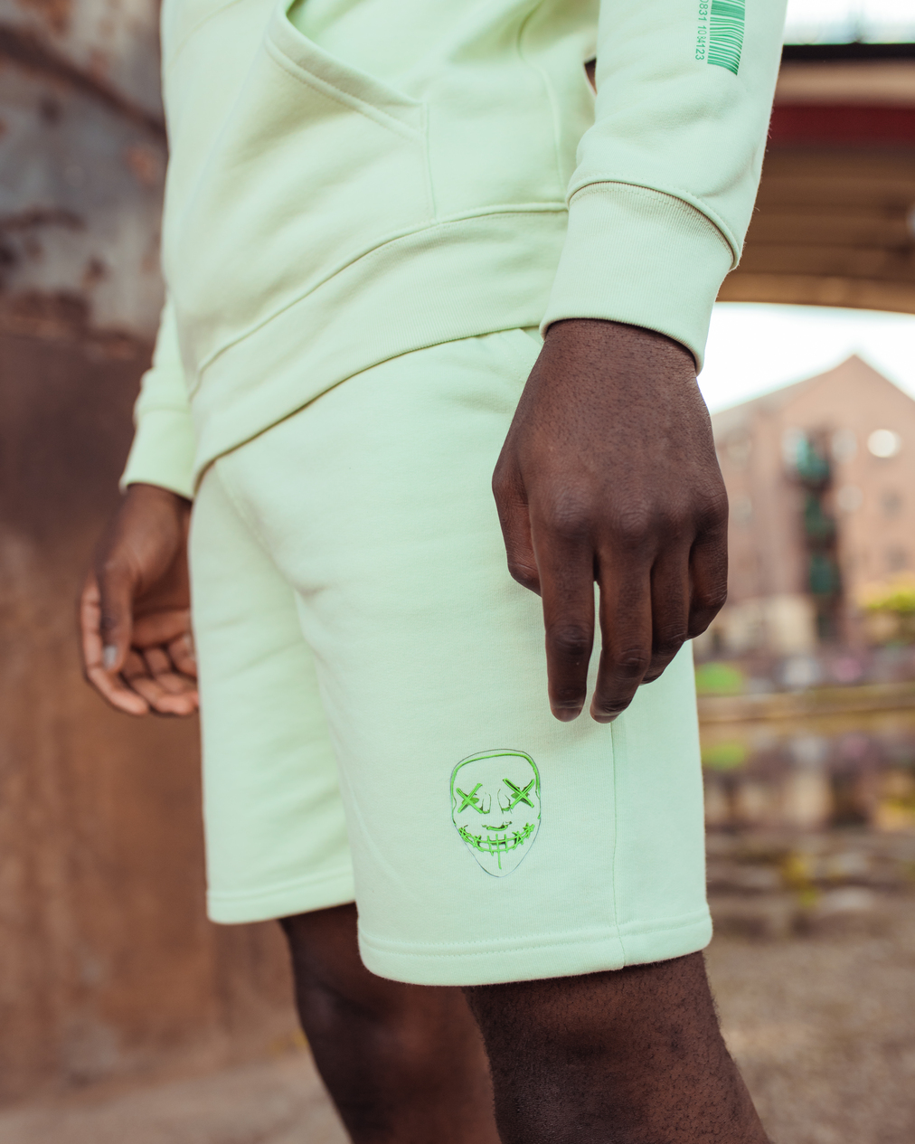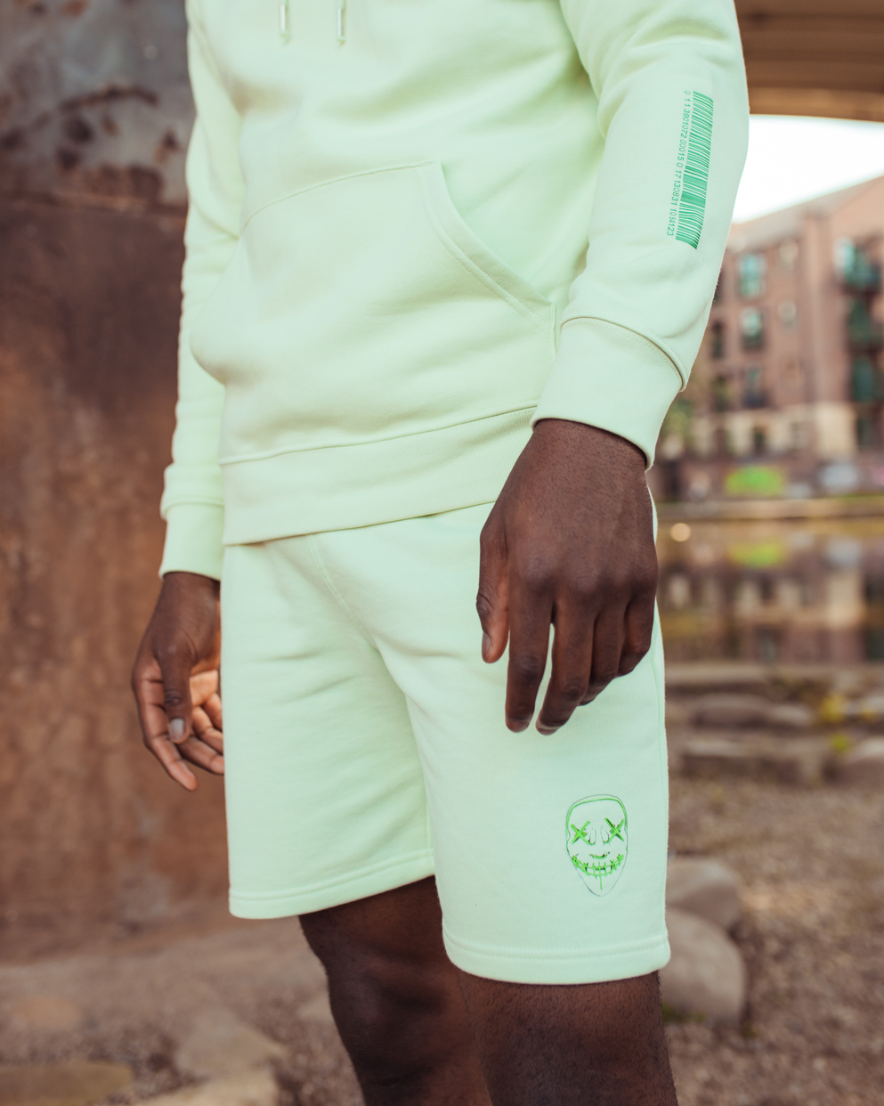 Stem Green, 85% Organic ringspun combed cotton, 15% recycled polyester, Printed graphics, Drawstrings, 300gsm
