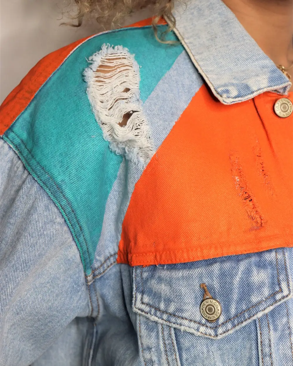 100% denim, handmade, hand-painted, rips, hand wash only.